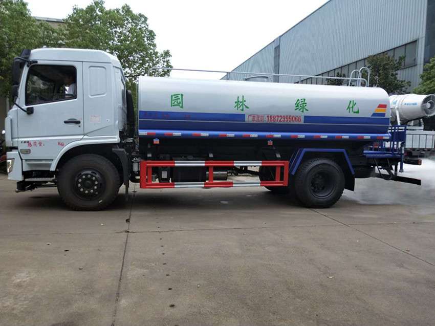 東風(fēng)灑水車罐體采用碳鋼板制作,罐體內(nèi)做防銹處理,功能:前沖后灑、罐體后帶工作平臺,平臺上安裝綠化灑水高炮,可多種雨狀調(diào)節(jié)(大雨、毛毛雨,霧狀),配備灑水泵,泵可自吸自排,帶自流閥,帶消防接頭,帶過濾裝置。